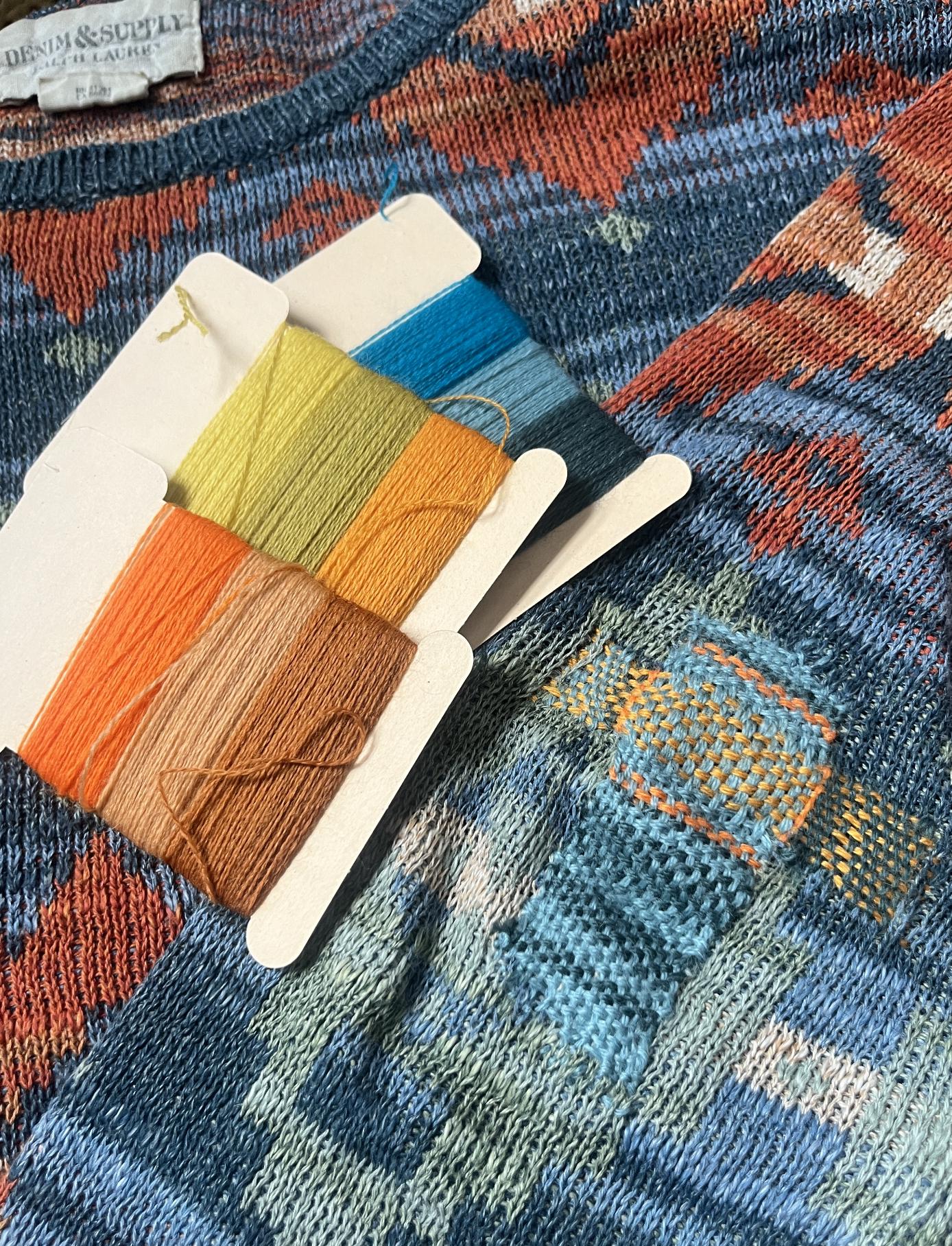 Clover recommends using a #22 cross stitch needle for repairing knits. One or two strands of yarn can be used.